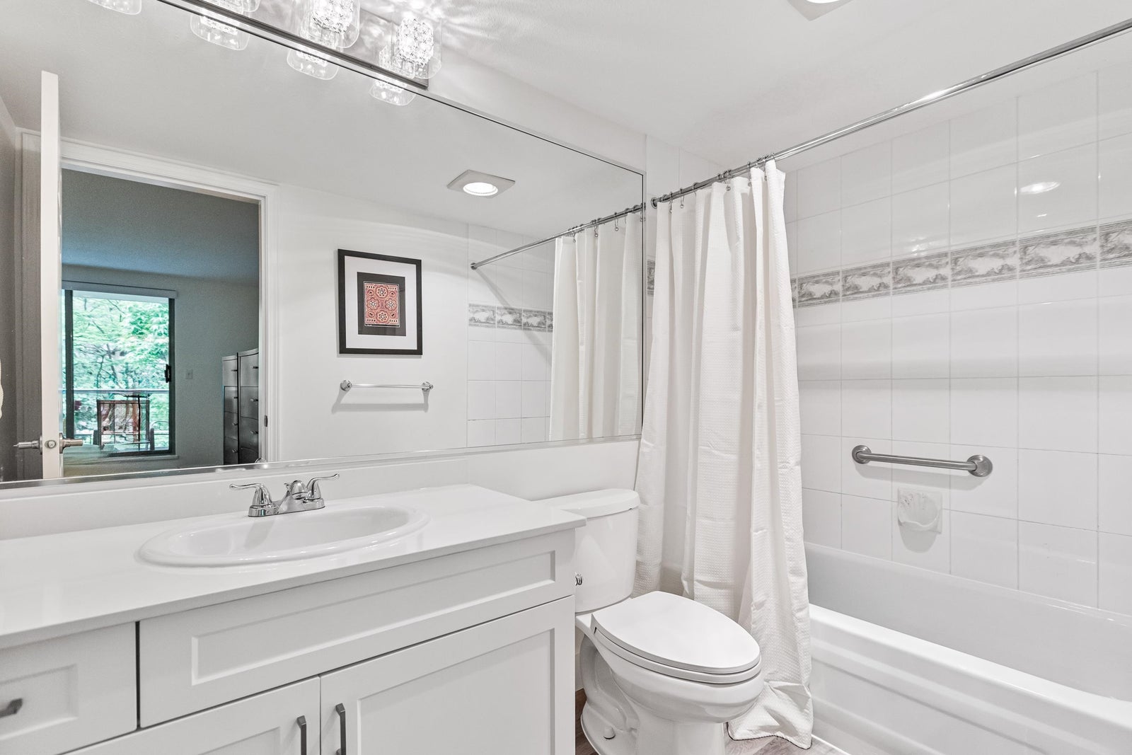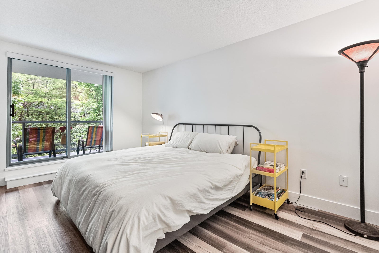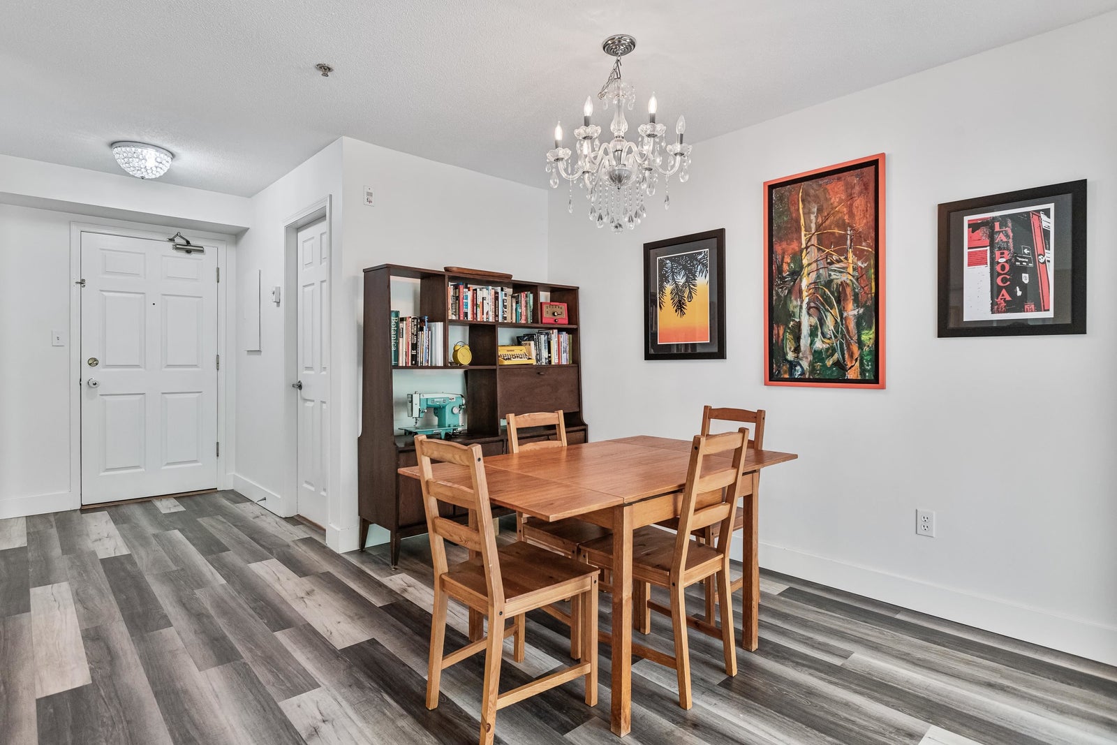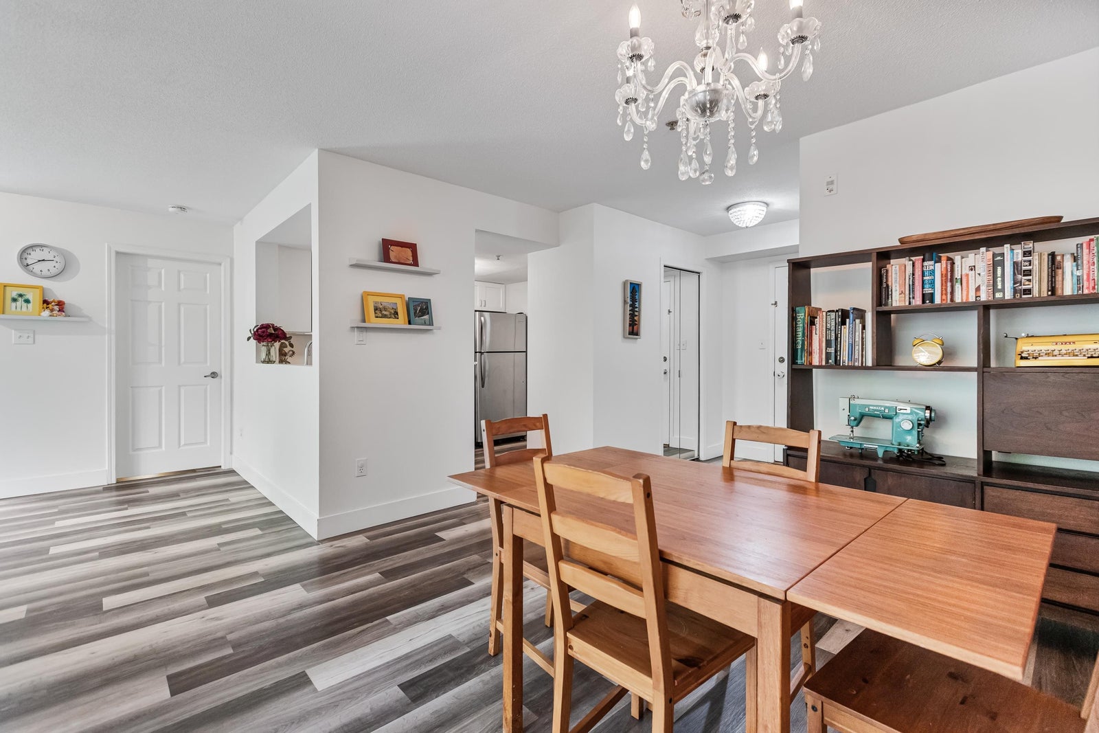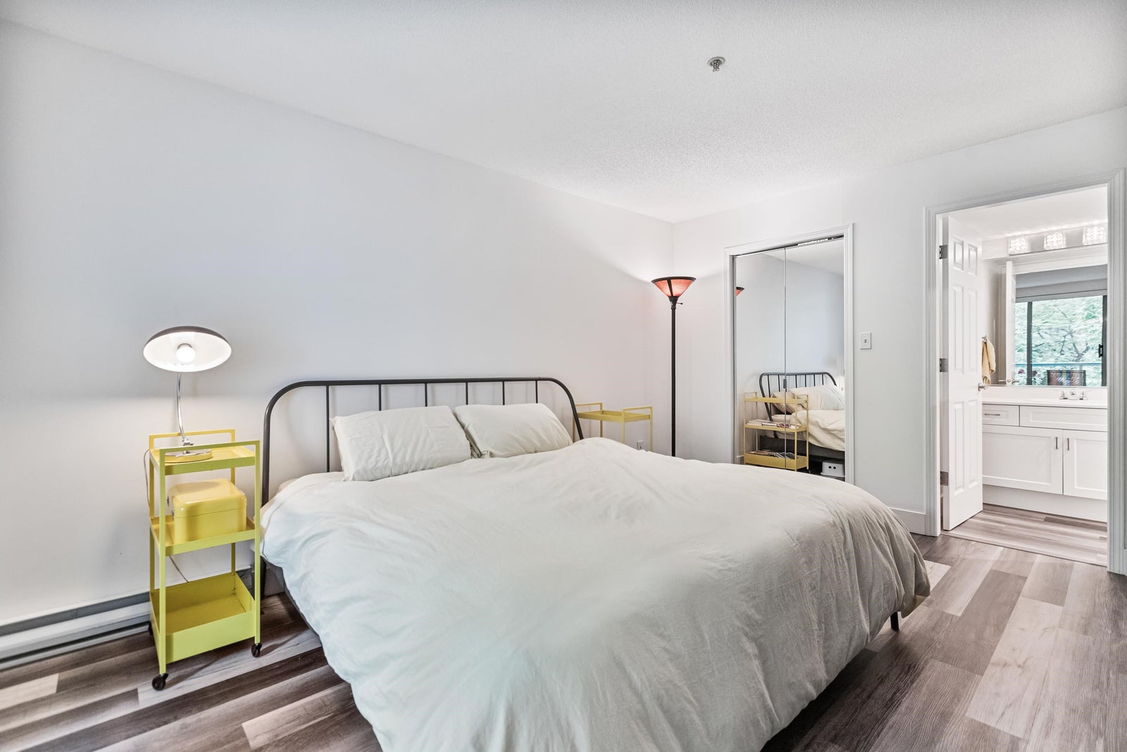 Renovated 2 bed, 2 bath condo in the Burrard Building at Newport Village. Quiet, private, surrounded by lushes greenery & move-in ready. Kitchen has been updated with new white shaker cabinets, quartz counters, stainless steel appliances & a large pantry & pass through creating a more open concept space. This well cared for unit has also been refreshed with wide plank laminate, updated light fixtures & blinds throughout. It also comes with a gas fireplace, perfect to warm up those rainy days. Second bedroom is a great versatile space, that can be used as a bedroom, office or playroom. Large, private patio is ready for your summer BBQs or morning coffees surrounded by trees. Unbeatable location - steps to SkyTrain, West Coast Express, shops, dining & more.
