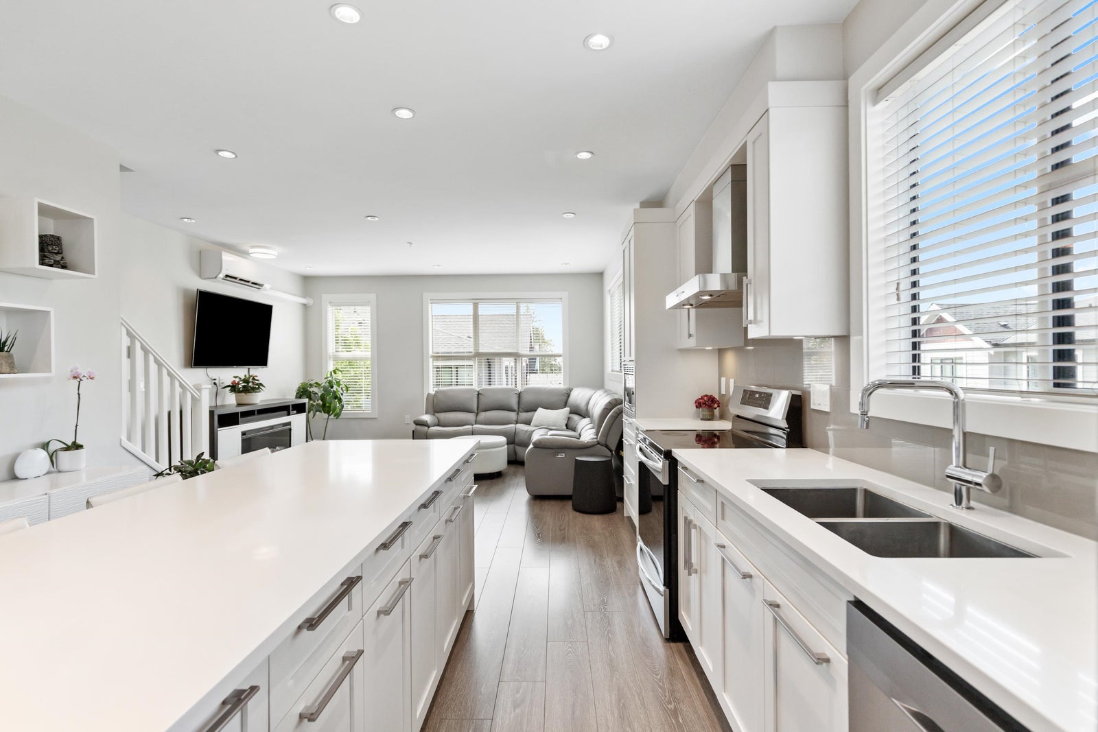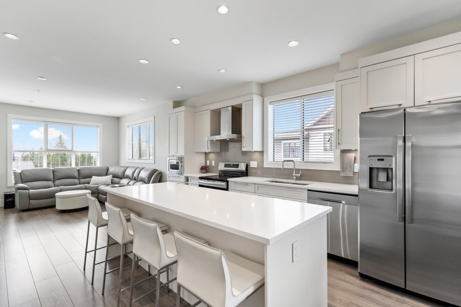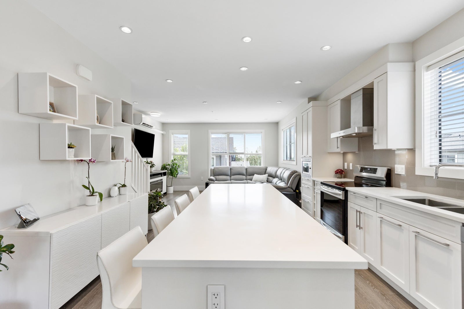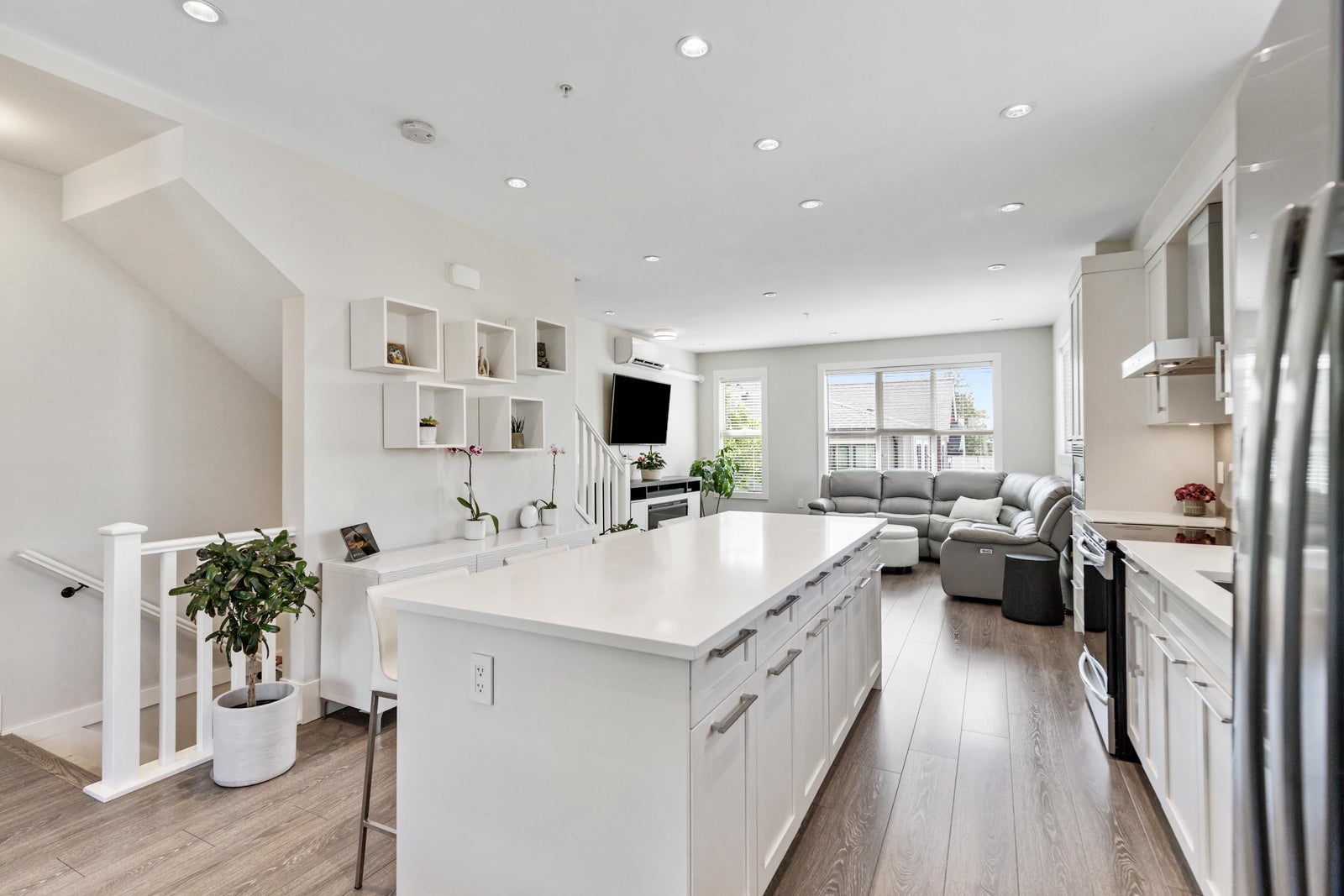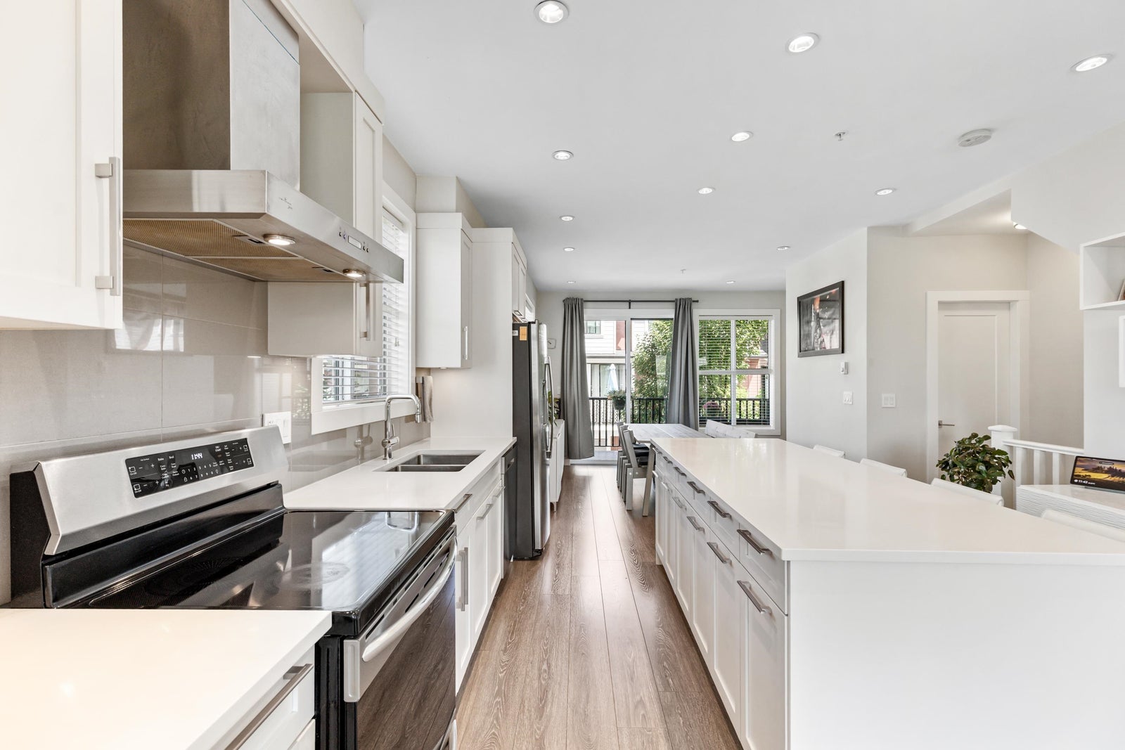 Sought-after Archstone Rockridge—where refined design meets serene living. This rare corner unit boasts a highly coveted floorplan within a boutique collection of thoughtfully curated homes. Perched at the peak of the complex & spanning over 1,600 sqft, this 4 bedroom residence features modern elegance: Enjoy 9-foot ceilings, AIR CONDITIONING, quartz countertops, oversized island w/ breakfast bar, S/S appliances & spacious great room-style main floor, bonus office nook & massive sundeck—ideal for entertaining. Primary boasts built in cabinetry & spa-inspired ensuite. Bonus 4th bedroom perfect as a guest room or office. Just steps from transit, trails, Maple Ridge Park, Wildplay, Alouette River & Golden Ears Provincial Park