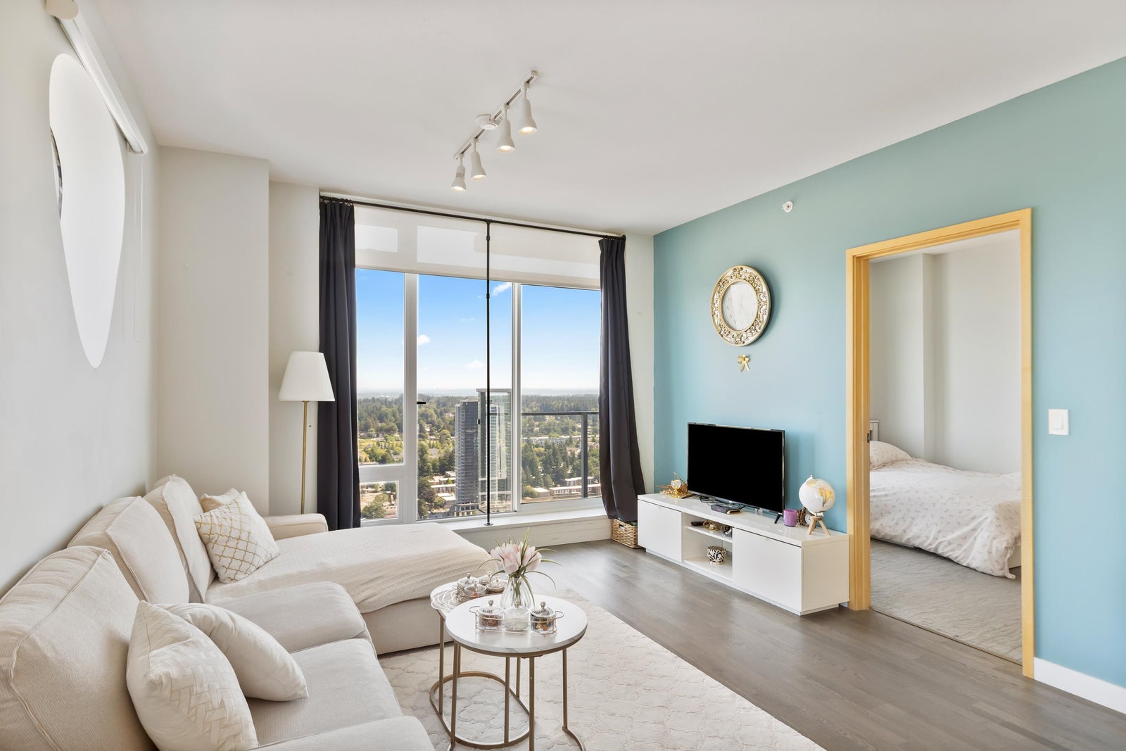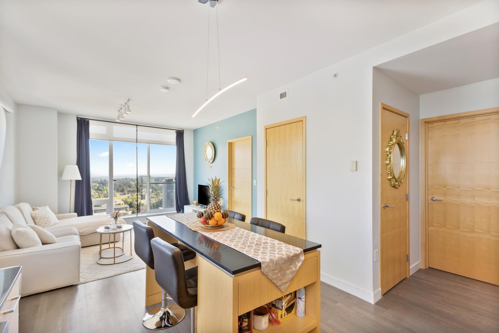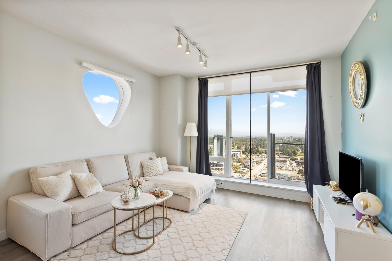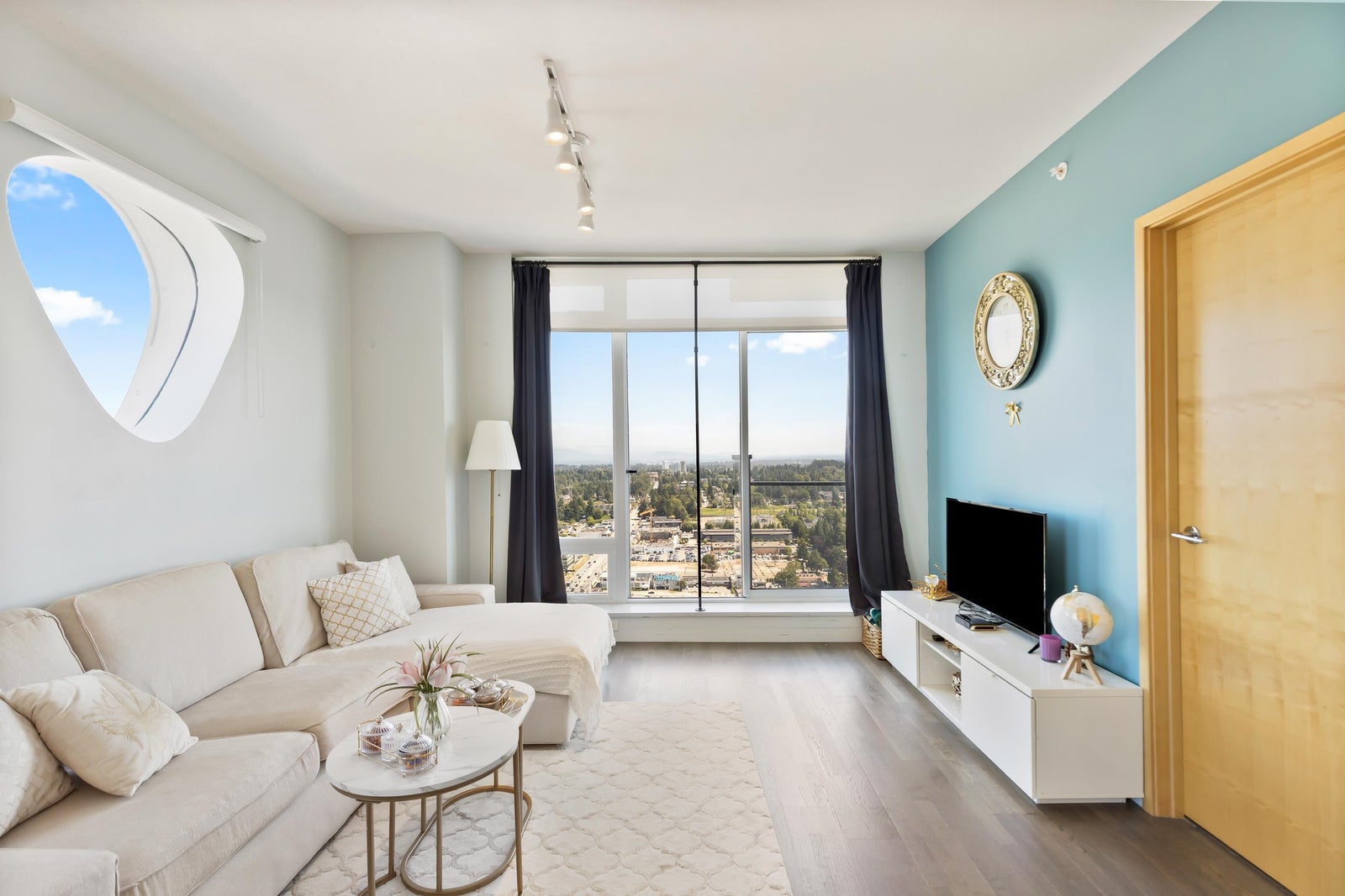 Welcome to 3 Civic Plaza – Surrey’s premier high-rise. This 37th floor corner unit offers 1 bedroom, 1 bathroom, and 603 sq ft of open-concept living with stunning panoramic city and mountain views. Features include floor-to-ceiling windows, quartz countertops, stainless steel appliances, radiant heating, air conditioning, and in-suite laundry. Enjoy spa-like amenities including a fitness centre, steam room, hot tub, concierge service, and on-site café and restaurant. Located in the heart of downtown Surrey—just steps from Surrey Central SkyTrain, SFU campus, Central City Mall, City Hall, and the future UBC campus. Includes 1 secure parking stall and storage locker. Experience luxury living in one of Surrey's most iconic towers. Open House Sat July 26 2-4pm - Call the listing agent