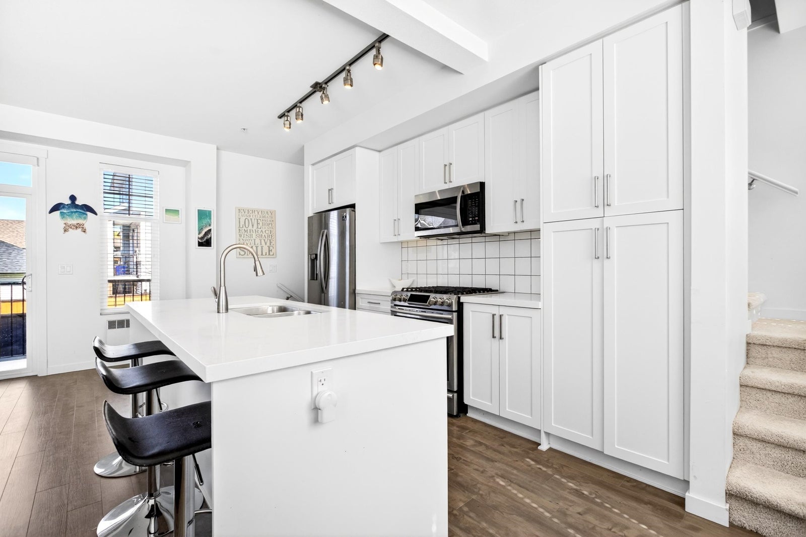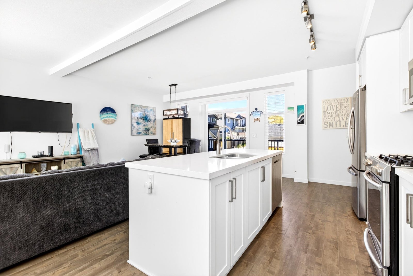 Welcome to Willow & Oak! This beautifully designed 3-level home offers 10’ ceilings, abundant natural light & a modern open-concept layout. The bright kitchen features white cabinetry, quartz countertops & stainless steel appliances. Main level features rich dark plank flooring, flowing seamlessly into the spacious living & dining areas & a large patio ready for your summer BBQ. Upstairs you’ll find 3 bedrooms, including a primary suite with vaulted ceilings, a walk-in closet & a spa-inspired ensuite complete with double sinks & oversized shower. Additional highlights include full-size laundry & a double side-by-side garage. Perfect combination of style, comfort, and functionality - ideal for families or those looking for contemporary living in a sought-after Community!OPEN HOUSE Sun 3-5pm