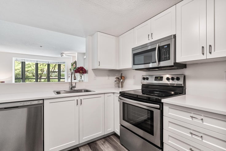 Renovated 2 bed, 2 bath condo in the Burrard Building at Newport Village. Quiet, private, surrounded by lushes greenery & move-in ready. Kitchen has been updated with new white shaker cabinets, quartz counters, stainless steel appliances & a large pa ...